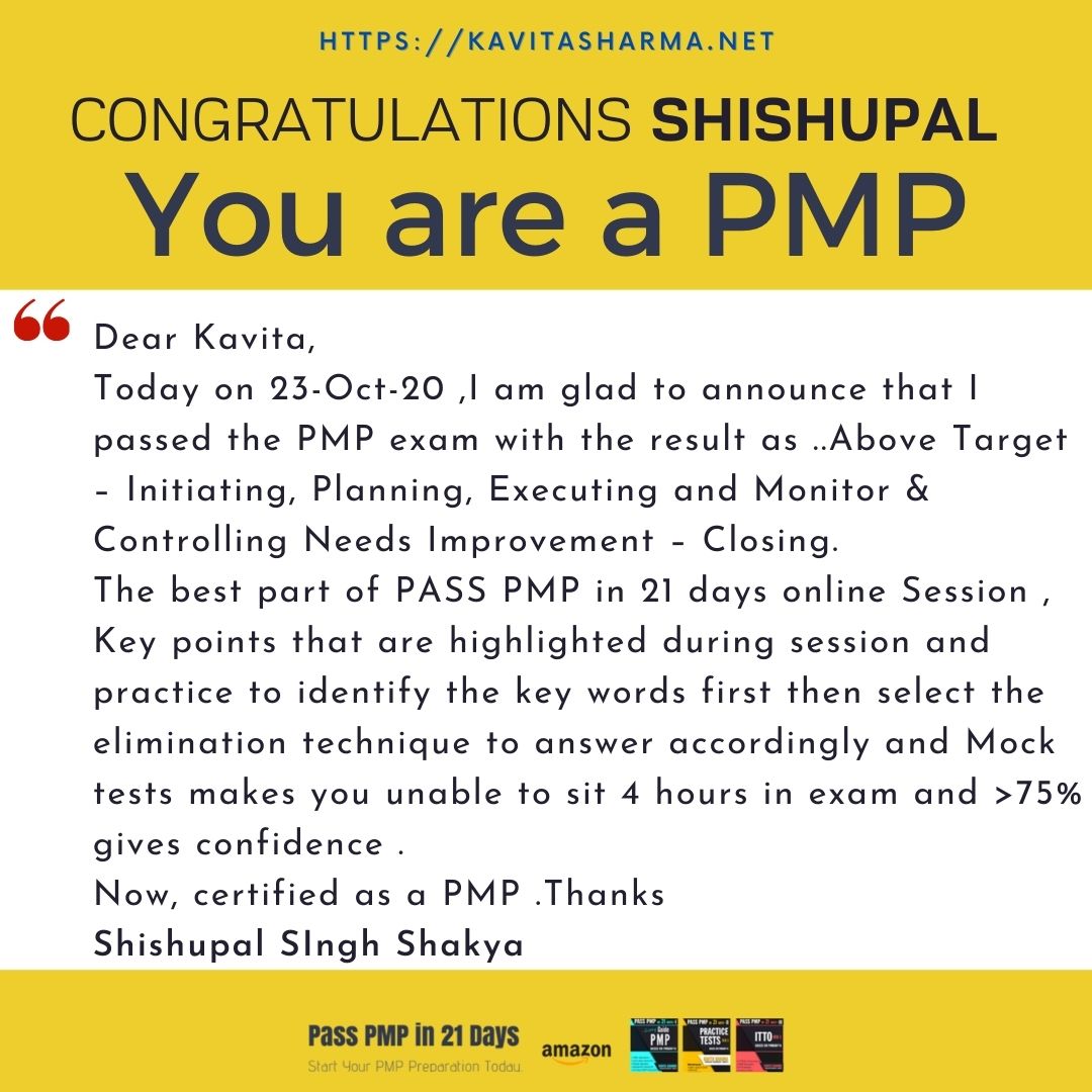 Today on 23-Oct-20 ,I am glad to announce that I passed the PMP exam with the result as ..
