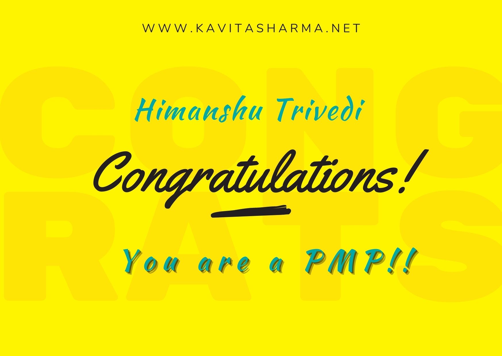I have passed the PMP exam. That was my first attempt on 28 December. The entire credit goes to you and your 'Pass PMP in 21 Days' study programme.