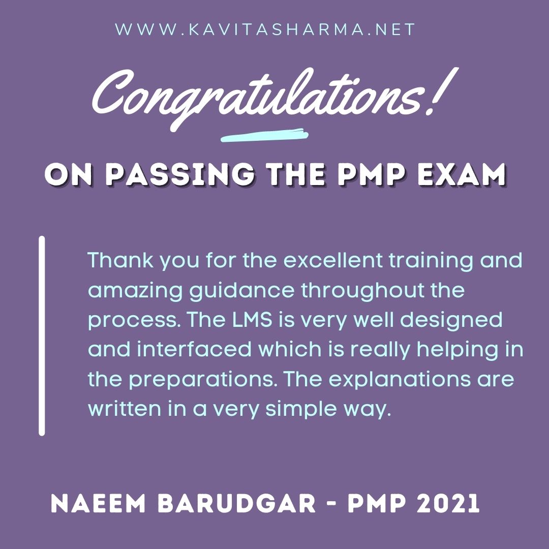 by Kavita Sharma - Congratulations on passing the new PMP Exam - 2021 - Naeem - You made me proud..